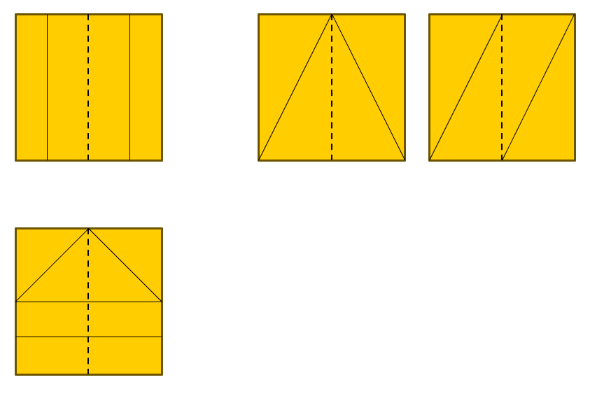 - Opdracht: vouw het vierkante blaadje zó dat het oppervlak halveert (alléén vouwen!)